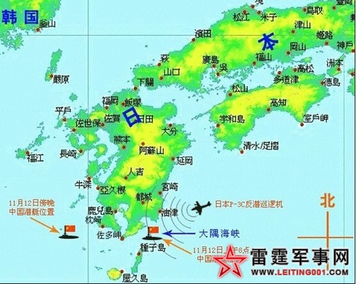 三艘中国军舰穿越大隅海峡的示意图