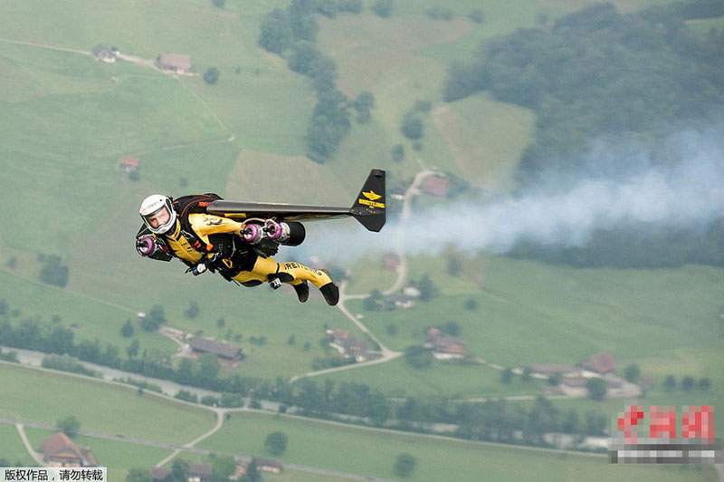 瑞士“火箭侠”与客机赛跑