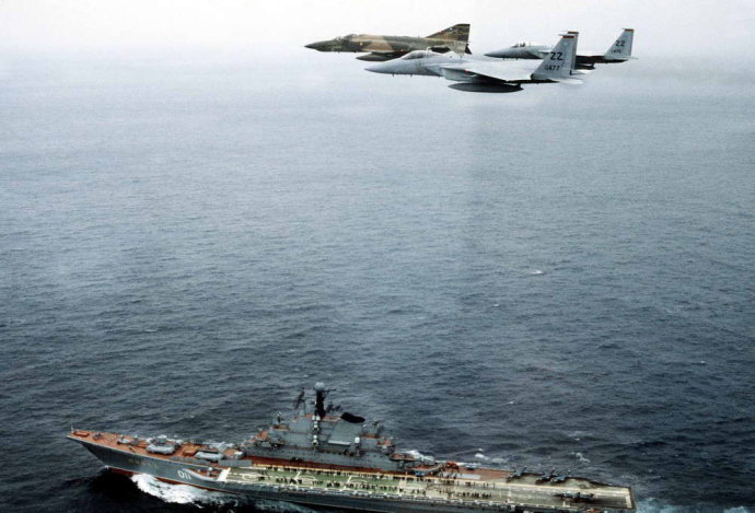 近几年国内媒体常有美国在东亚等地军演被俄军侦察机抵近“威胁”,美军颇为狼狈云云的消息见诸报端,似乎俄军颇为扬眉吐气。殊不知对此类侦察行动,被侦察一方通常不会有什么过激反应。即使在冷战年代,苏联海军的黄金时期,苏联舰队被北约军机临空穿越简直是家常便饭。明斯克号遭F-4和F-15编队凌空。